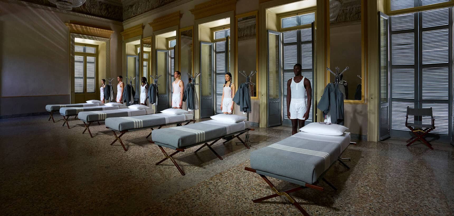 ろうそくの明かりに灯されたサン・シンプリチャーノ教会の回廊で行われたサンローラン リヴ・ドロワのプレゼンテーションでは、ジオ・ポンティがベネズエラ・カラカスのアナラとアルマンド・プランチャート夫妻宅のためにデザインし、クリエイティブ・ディレクターのアンソニー・ヴァカレロがキュレーションを務めたプレートが未来的なチューブの中に展示された。グッチの「デザイン・アンコーラ」(新たにクリエイティブ・ディレクターに就任したサバト・デ・サルノのデビューコレクション)では、マリオ・ベリーニやピエロ・ポータルッピ、ナンダ・ヴォージ、トビア・スカルパ、ガエ・アレンティ、ピエロ・カスティリオーネによる5つのアイコニックなオブジェが、ブランドの新しいシグネチャーである深みのあるチェリーレッドをまとって生まれ変わった。ロロ・ピアーナでは、インテリア部門のディレクターであるフランチェスコ・ぺルガモが2020年に世を去った建築家チニ・ボエリにオマージュを捧げた。ボエリがデザインした代表的な家具をロロ・ピアーナのラグジュアリー感あふれるファブリックで飾り、存命であれば100歳を迎えた誕生日を祝った。そしてヴェルサーチェは、ブランドの本拠地であり、スーパーモデルブームのきっかけとなった1991年のコレクションが生まれた場所でもあるパラッツォ・ヴェルサーチェを舞台に「If These Walls Could Talk」と題したショーケースを通じてホームコレクションを披露した。