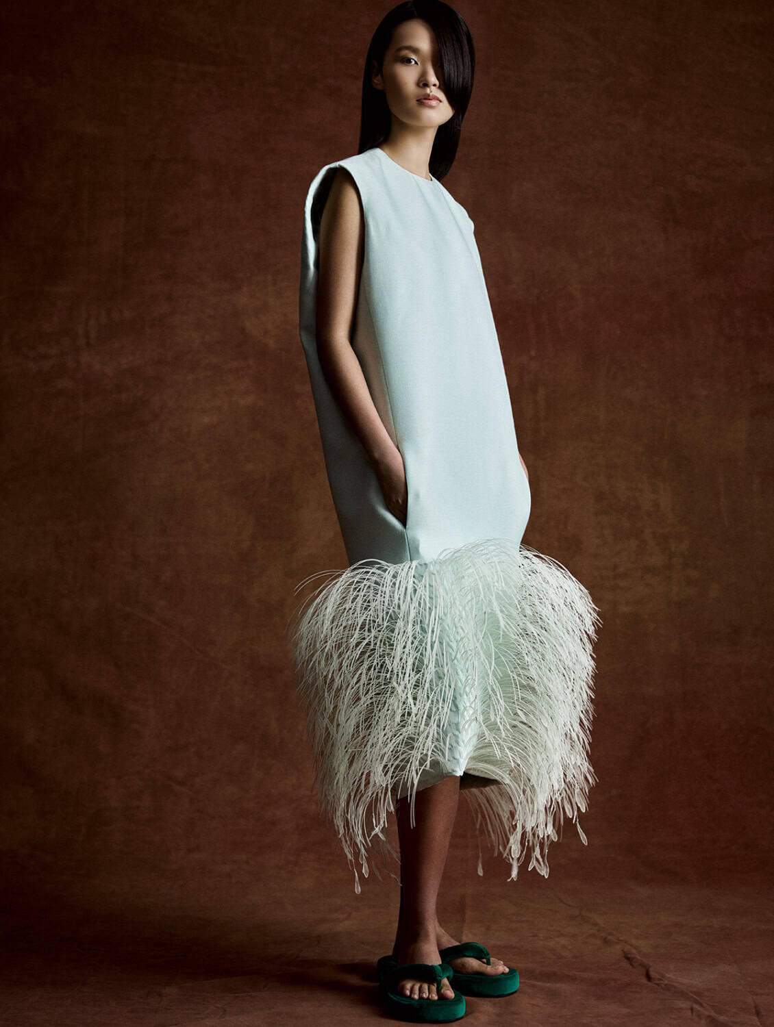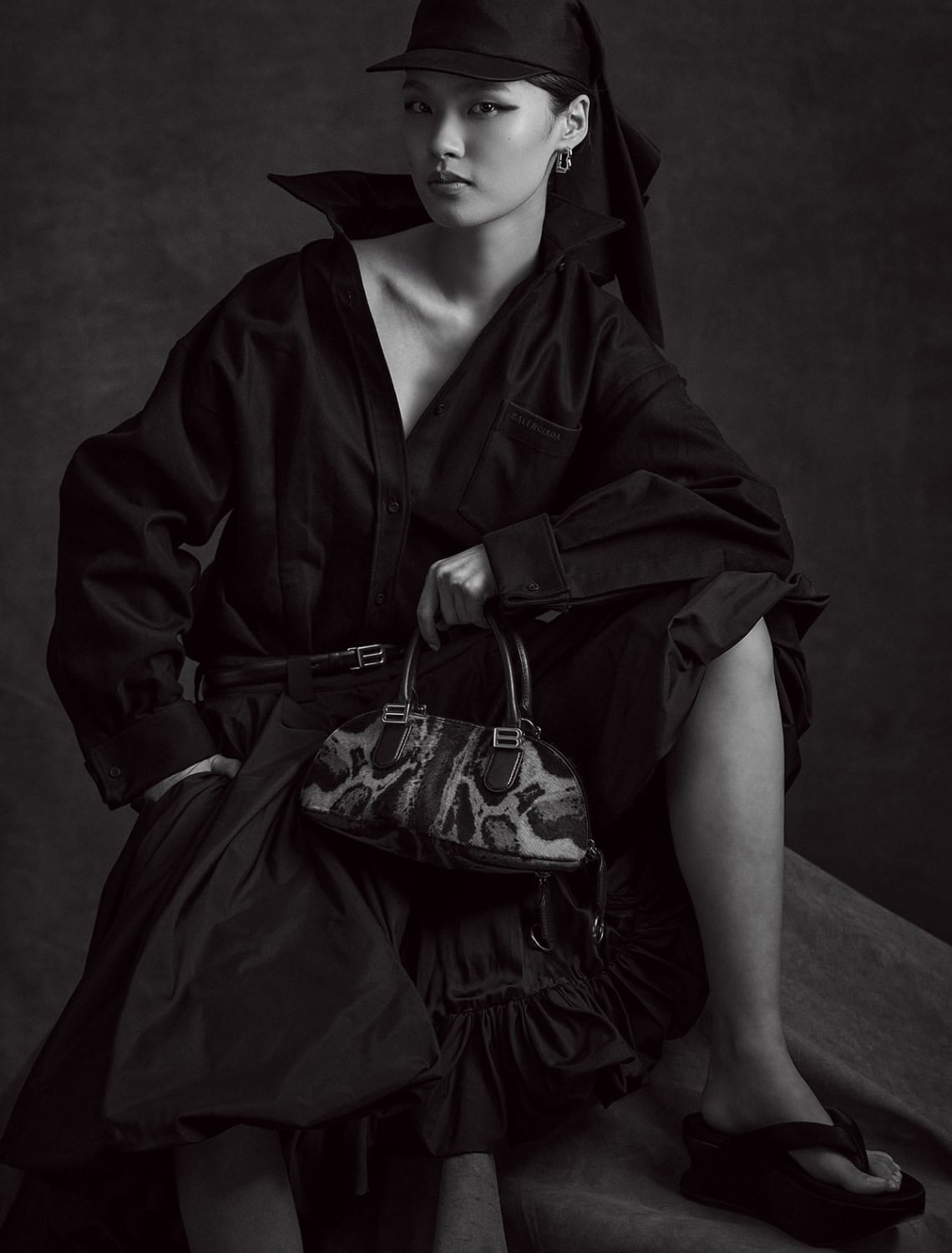 心臓の鼓動を録音したカセットテープと再生機器を招待状に、人間性と創造性の本質を問い直した新生バレンシアガ。新クリエイティブ・ディレクター、ピエールパオロ・ピッチョーリが再定義したコレクションを、イットモデルのグ・ハイジュがモダンに着こなす。