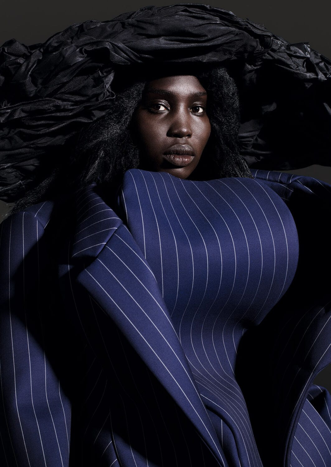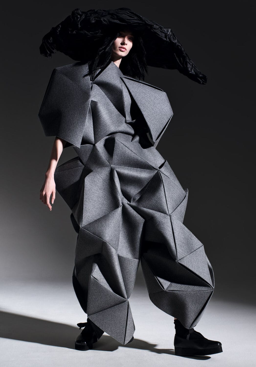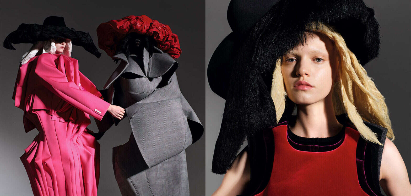 大きな波に飲み込まれ、感覚が麻痺していく時代。今季、秩序と服従の象徴ともいえるビジネスウェアを解体し、「SMALLER IS STRONGER」という思想を服に刻み込んだ川久保玲。その意志を宿した重厚で構築的なフォルムを、6人のモデルが凛とした佇まいで力強く映し出す。