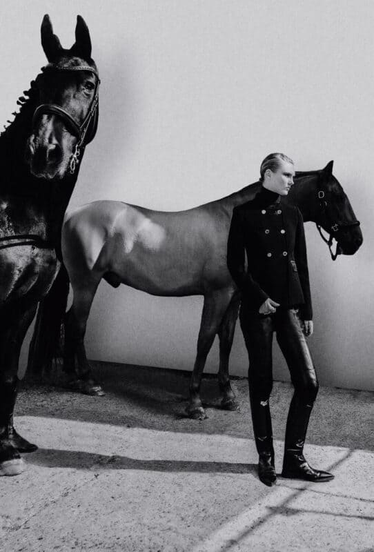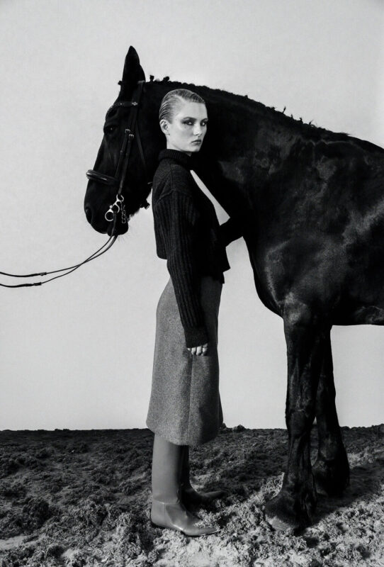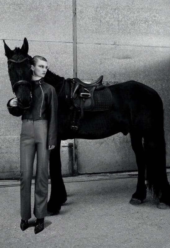 「乗馬はしないのですが─」と前置きしてから、エルメスのレディスプレタポルテ部門のアーティスティック・ディレクターを務めるナデージュ・ヴァンヘはこう続けた。「乗馬の文化は大好きです」。そんな彼女は、文明の発展に大きく貢献した人と馬との関わりを学ぶうちにエルメスの鞍づくりの虜になった。人々から絶賛されるエルメスのウェアの唯一無二のフィット感は、鞍づくりに対する自身の愛着から生まれるとヴァンヘは言う。