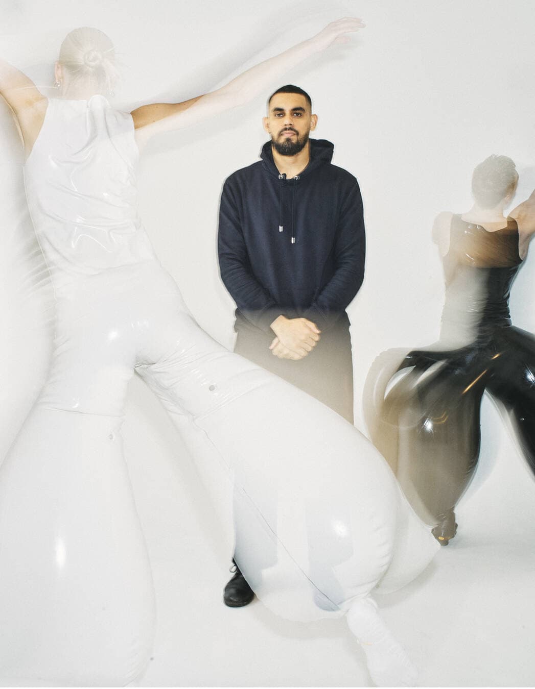 ロンドンを拠点とするデザイナー、ハッリ(29歳)は、型破りな球根のような形を作るために服を膨らませるかもしれないが、彼がクリエイティブ・バブルから抜け出せないと主張する人はいない。主に、足首から先が細くなり、空気を含んで膨らむラテックスのパンツを作ることで知られるインド生まれのデザイナーは、ロンドン・カレッジ・オブ・ファッションで技術を磨いた。BFCのニュージェンヌに選ばれ、2023年のロンドン・ファッション・ウィークに初出場。優雅な振り付けを駆使し、表現力豊かで自立した動きを披露し、今後注目すべき才能であることを証明した。ハッリの輪郭のあるクリエーションは、見る者を魅了する。