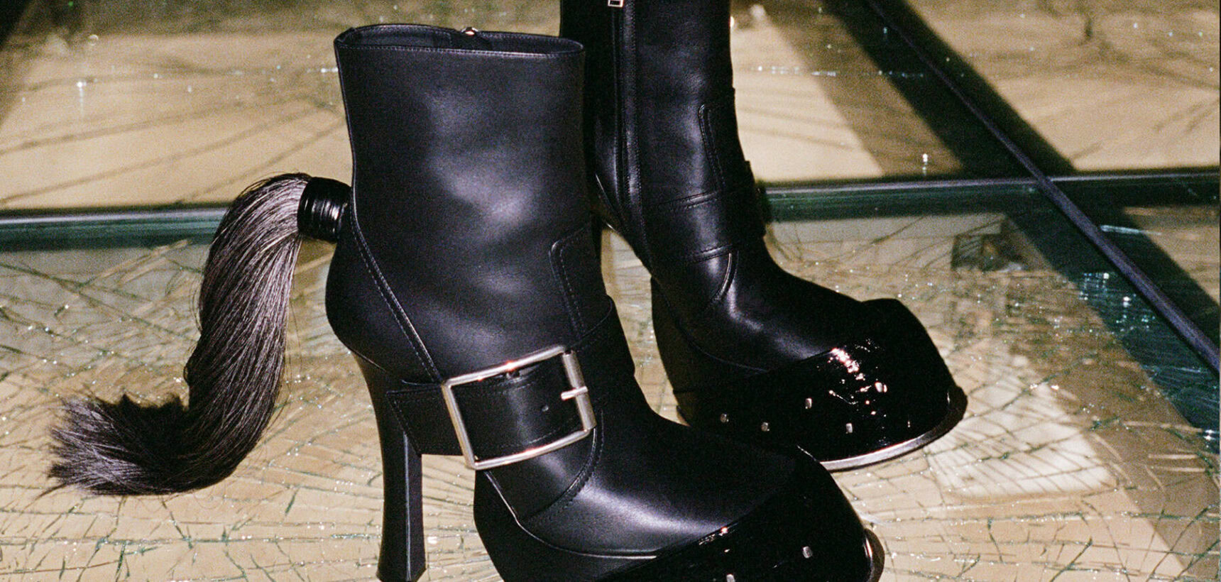 馬のひづめをイメージしたこのブーツは、ショーン・マクギアーがクリエイティブ・ディレクターに就任して初めて手がけた2024年秋冬コレクションでお披露目された。待望のデビューショーはパリで大成功をおさめ、フェイクファーのフルレングスコートや、アニマルプリントなど、新生マックイーンはハンサムな女性像をイメージつけた。これまでのブランド精神を継承しつつ、マクギアーはモダンかつダークな深みを加えている。馬からインスピレーションを得たブーツは、ひづめをモチーフに、細いヒールにスタッズがあしらわれた蹄鉄が特徴的。馬の尻尾のような大胆フリンジ付きバージョンも登場し、一度見たら忘れないアイテムだ。