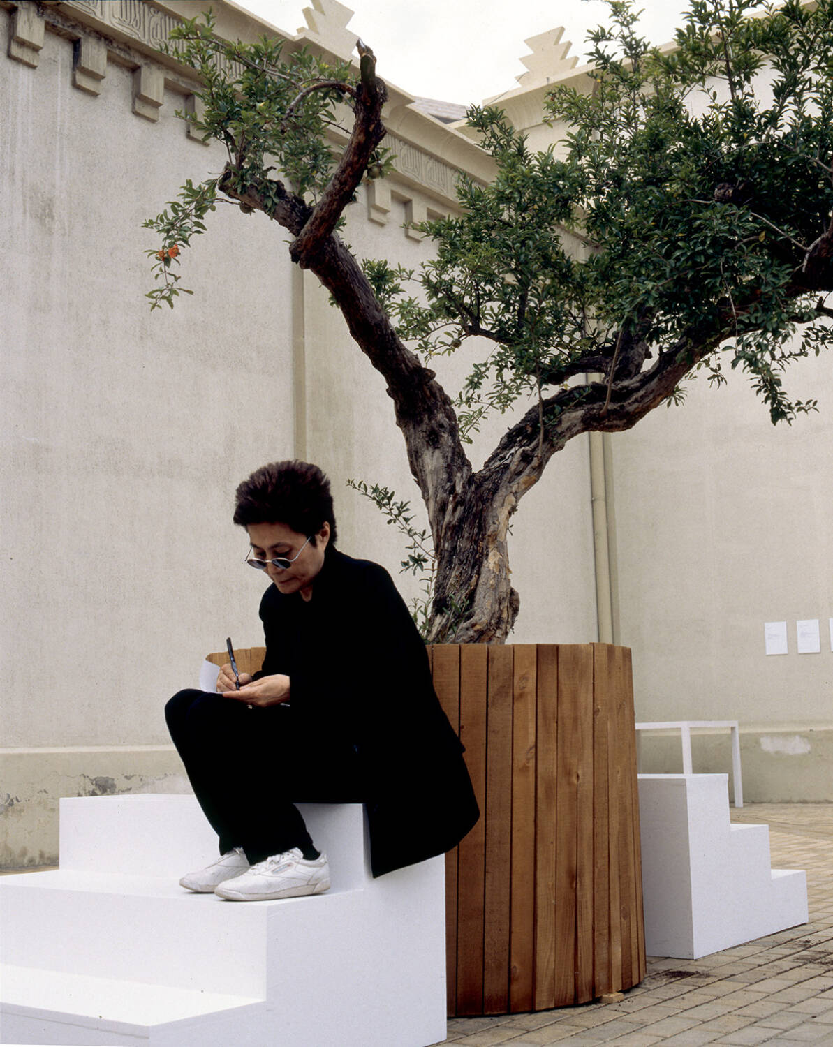 1997年、インタラクティブアートインスタレーション「ウィッシュ・ツリー」とヨーコ・オノ。 PHOTO BY MIGUEL ANGEL VALERO (COURTESY OF YOKO ONO)