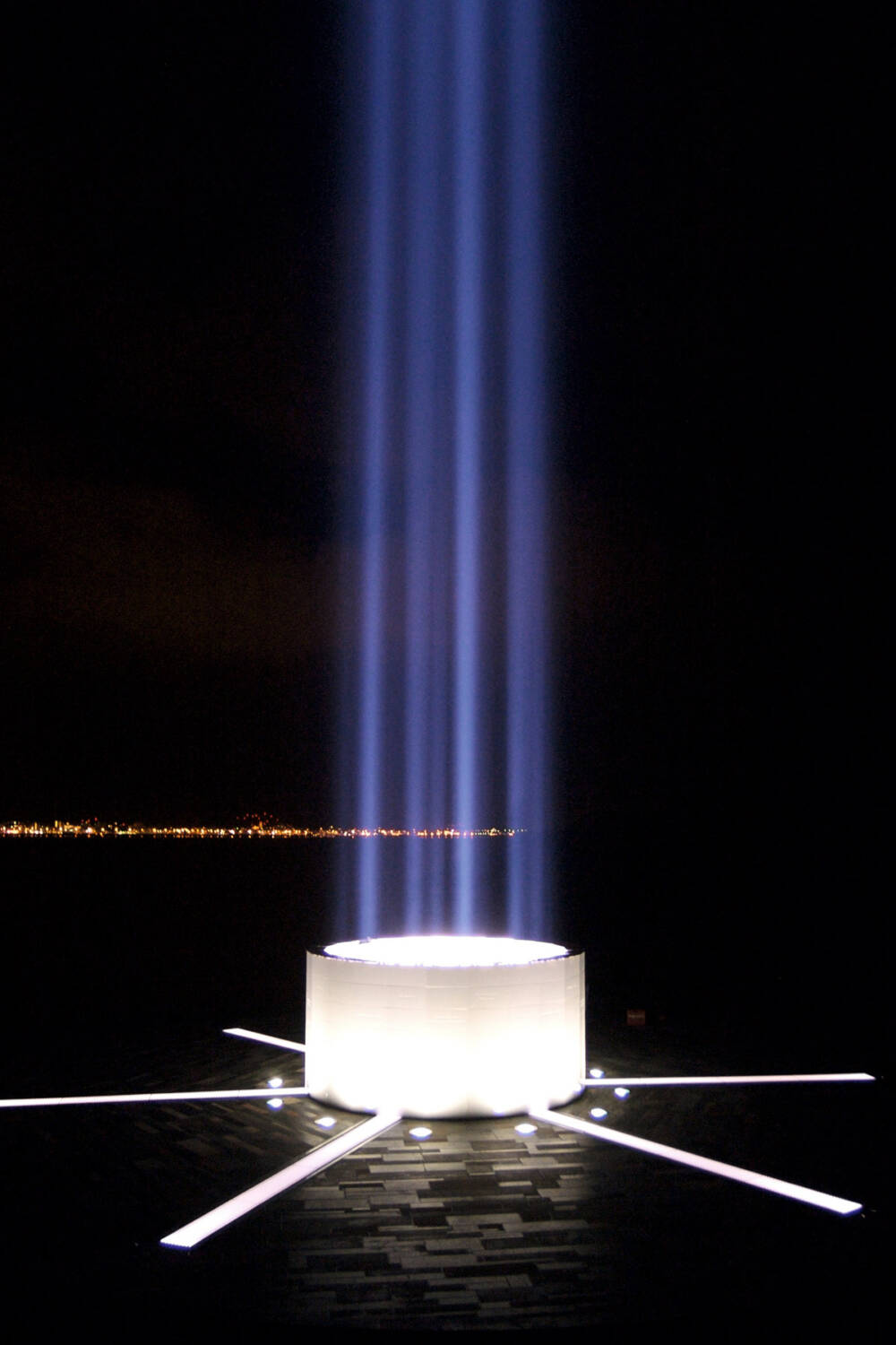 2007年「イマジン・ピース・タワー」(アイスランド・レイキャヴィーク沖合)。 PHOTO BY TETSURO HAMADA © YOKO ONO
