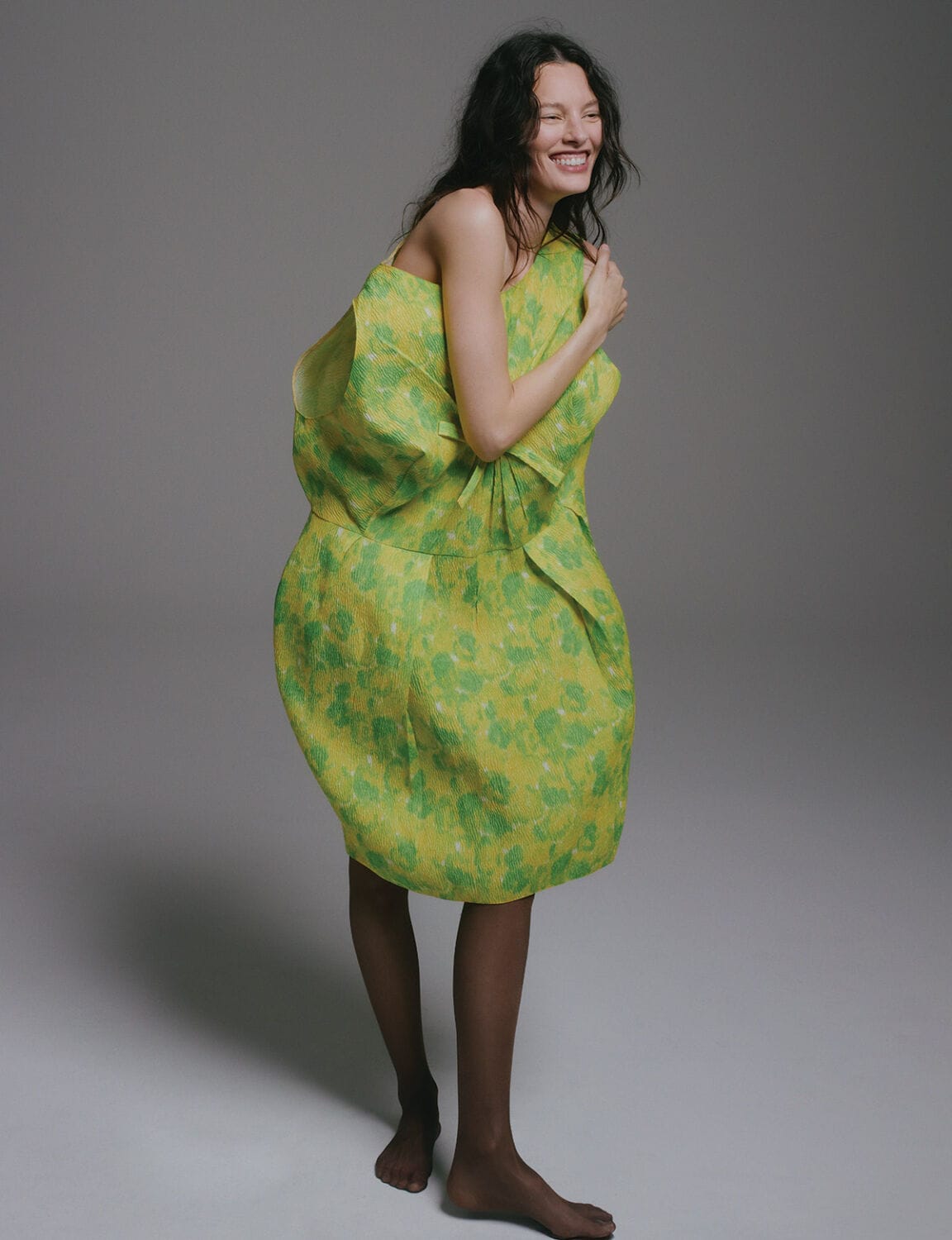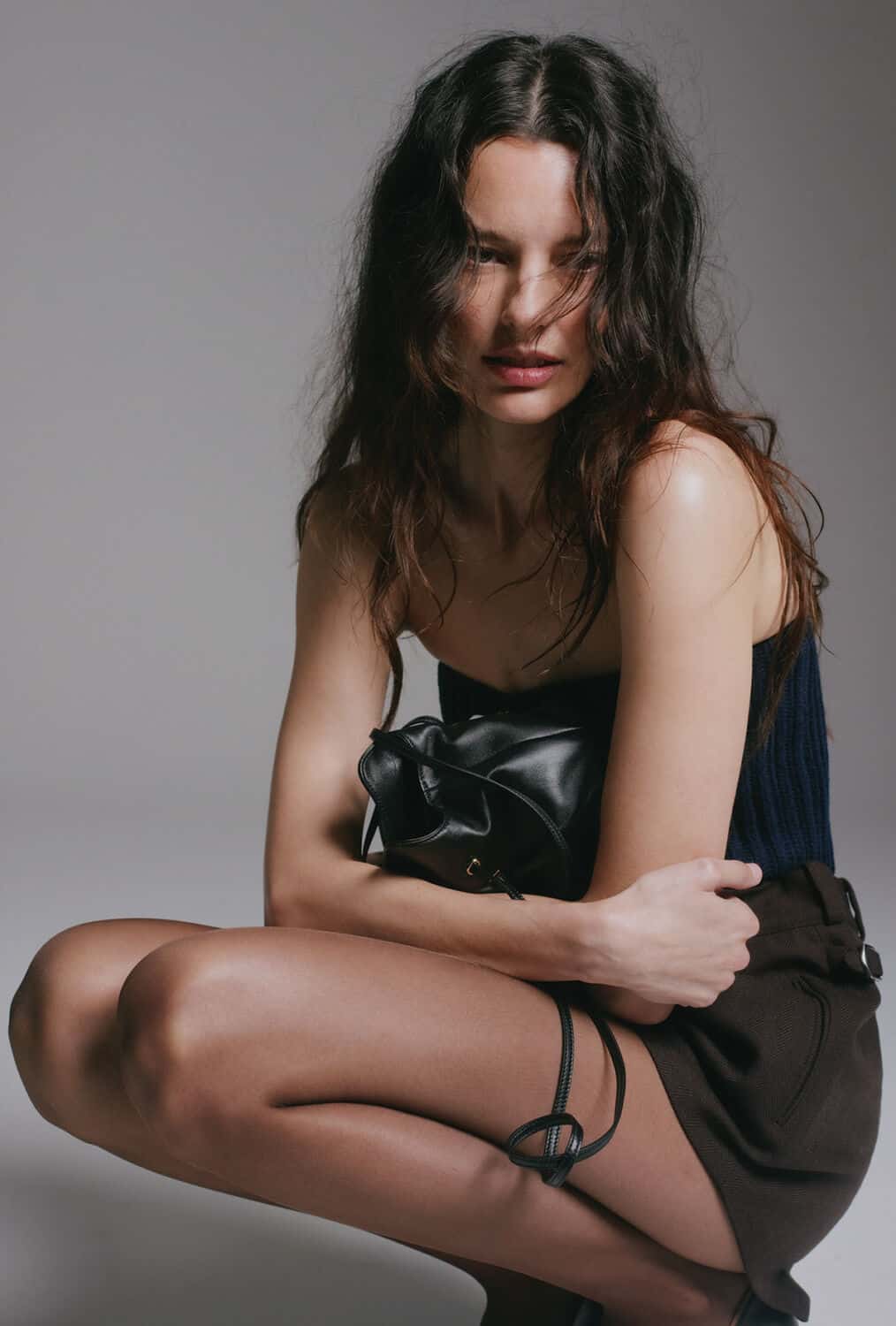 ミウッチャ・プラダとラフ・シモンズが提案する「女性らしさ」の再定義。その最新コレクションを、新作バッグ「プラダ ダダ」ともに、モデルのアマンダ・マーフィーが軽やかに纏う。