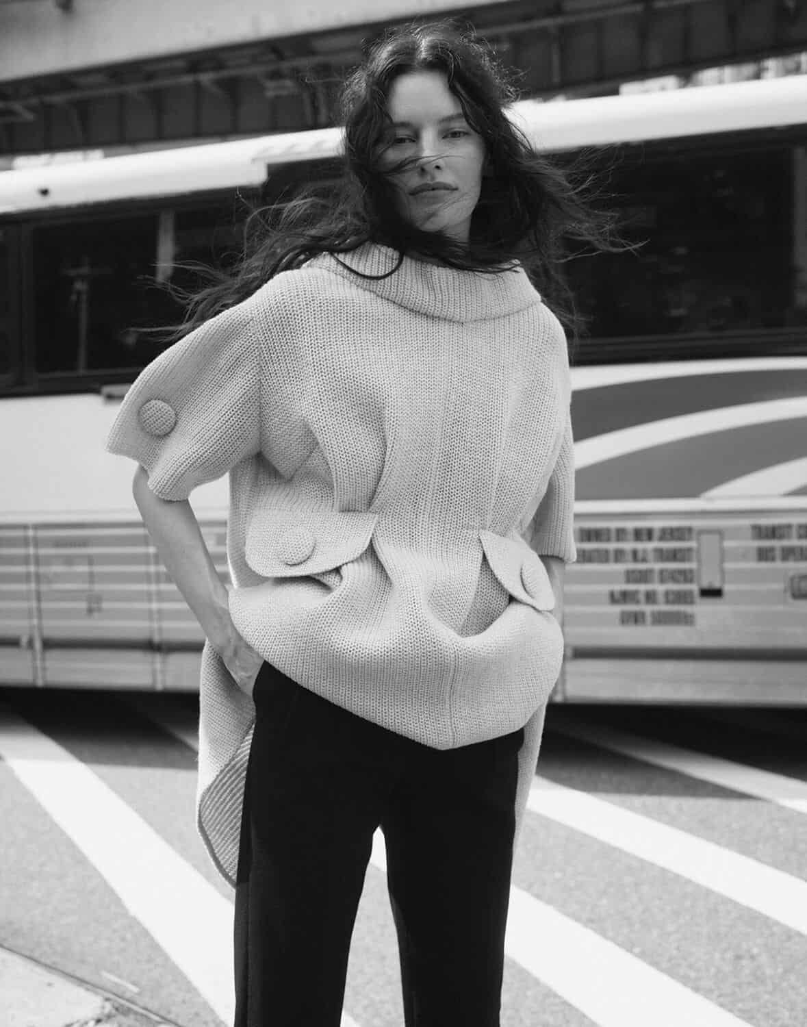 縫い目が印象的な黒のLBD(リトル・ブラック・ドレス)、ウエストを絞ったボリュームのあるシアリングコート、Aラインのジャケットとマイクロミニのセットで構成されたレザースーツなど、それぞれがまったく異なる女性像を描き出す。伝統的なシルエットをスケールダウンし、動きに合わせて形を変えるそのデザインは、日々を軽やかに乗りこなすために求められる、しなやかさや柔軟さを象徴するかのようだ。