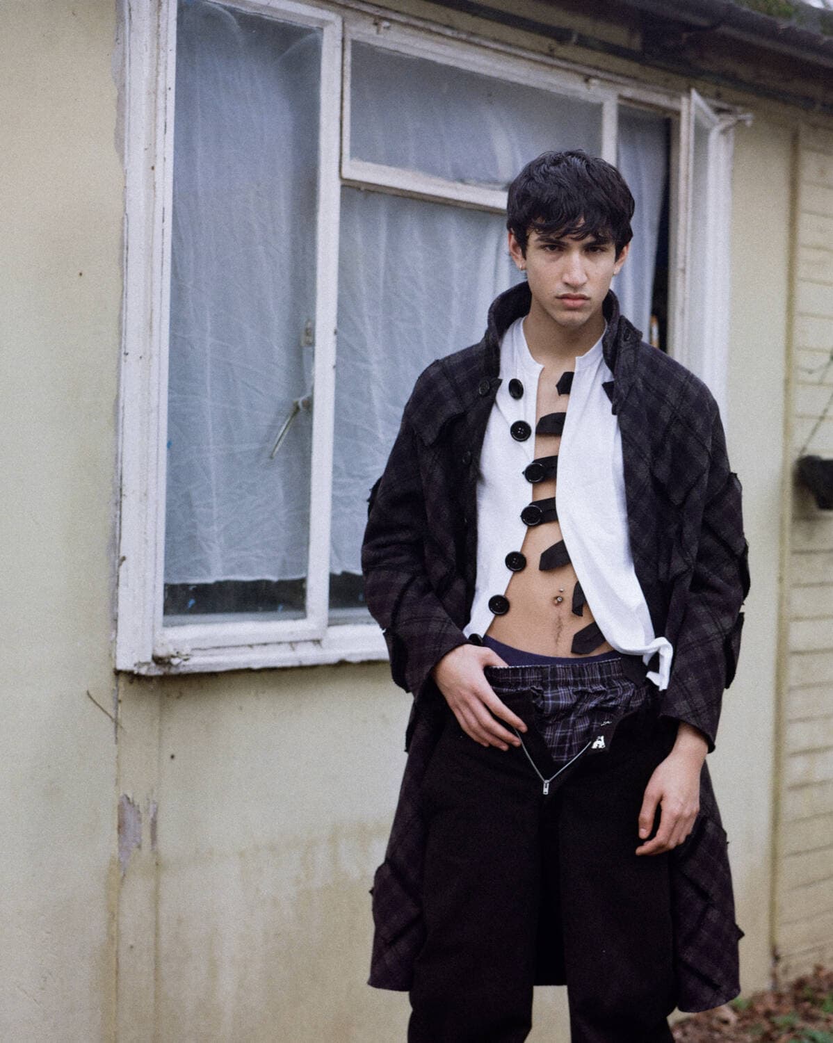 このような理念を持つスラッテリーは、すでに成功への確固たる基盤を築いている。あるメンズウェアブランドでのポストを獲得したばかりの彼は、自身の名を冠したブランドの成長に専念する前に、少しだけ自分のための時間を作ることにした。「5年後には、ロイヤリティの高い顧客ベースを持ちたいです。その後もずっとブランドを持ち続けられるように。自分のブランドに対する明確な目標はありませんが、逸脱した個性やアンダーグラウンドなものを称えるものであってほしいと願っています。私はこれまで生きてきて、自分の居場所がないと感じたことが多々ありました。だからこそ、服を通じて自分の”トライブ”のようなものを作りたいです。私のような人がそこに加わってくれたら嬉しいですね」