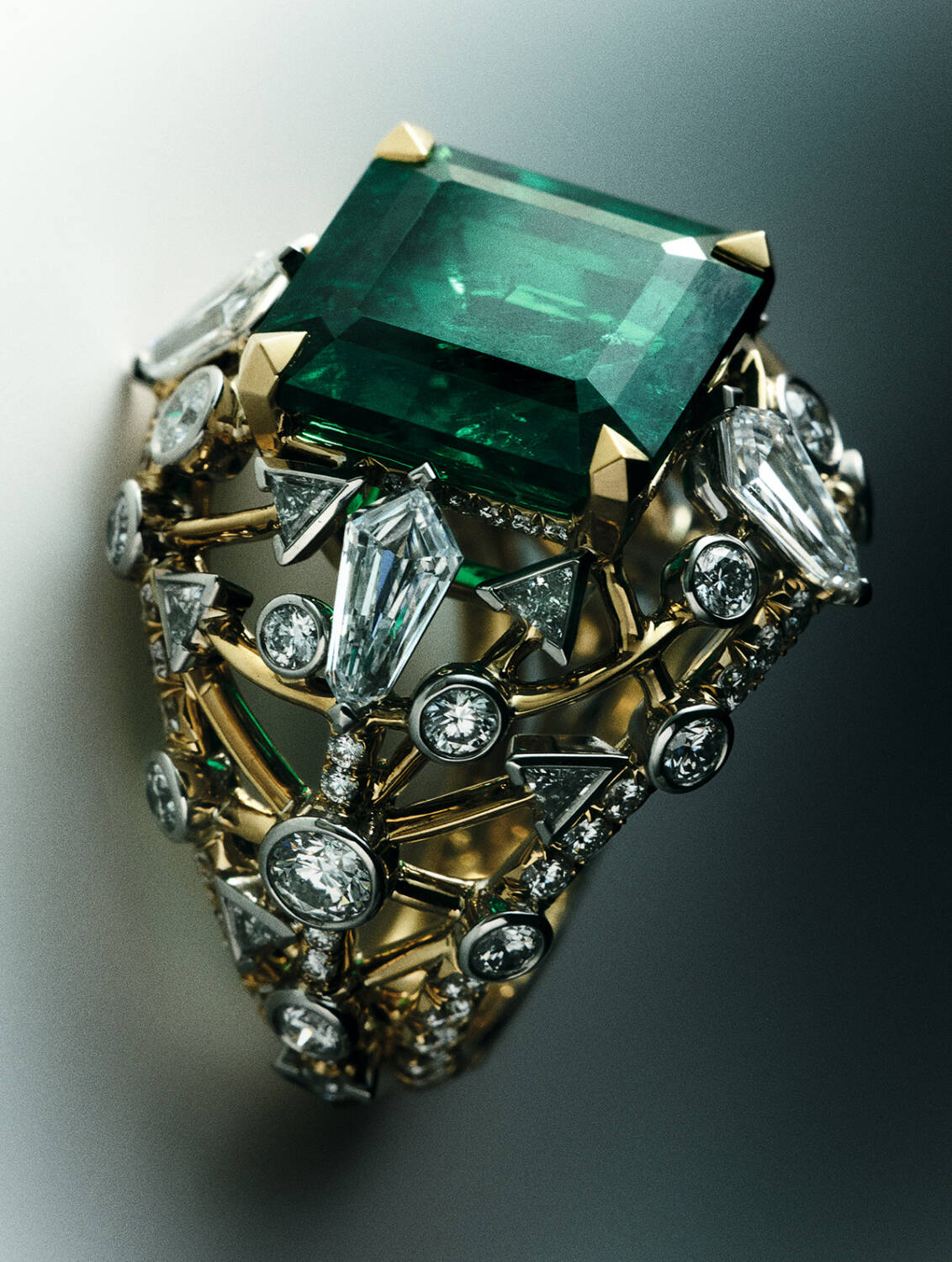 エメラルド×ダイヤモンド×プラチナ×イエローゴールド「アロー リング」/TIFFANY & CO.
